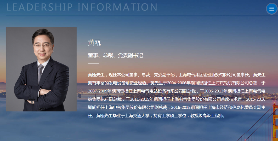 中國自媒體大摩財經指出,黃甌最後一次公開露面是在10天前。據上海電氣官方披露,2021年7月26日,鄭建華和黃甌一同出席了上海電氣幹部大會暨風控大會視頻會議,黃甌代表領導班子總結部署工作。