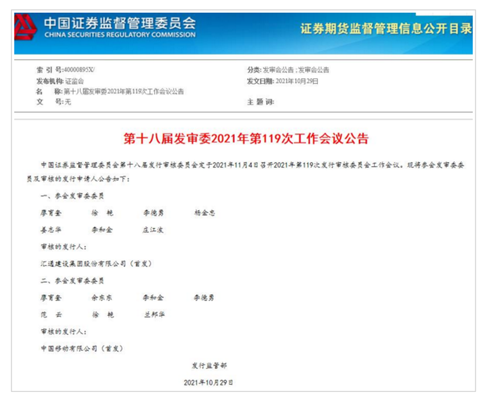隨着中國證監會公布了11月4日中移動首發上會的消息,也就意味着中移動回歸A股的進程將邁出了關鍵一步,大概率就在年內完成掛牌。