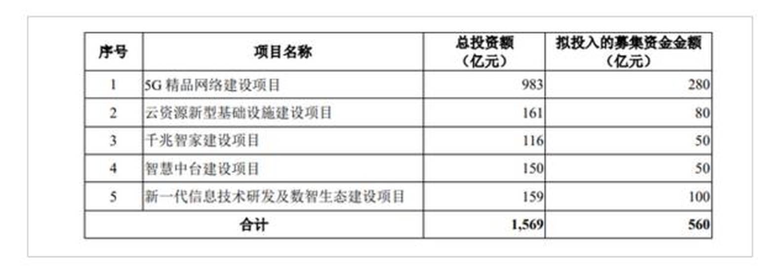 中移動的560億元募資,將投入到5G精品網絡建設、雲資源新型基礎設施建設、千兆智家建設、智慧中台建設、新一代訊息技術研發及數智生態建設等5個項目,繼續夯實其行業老大的位置。