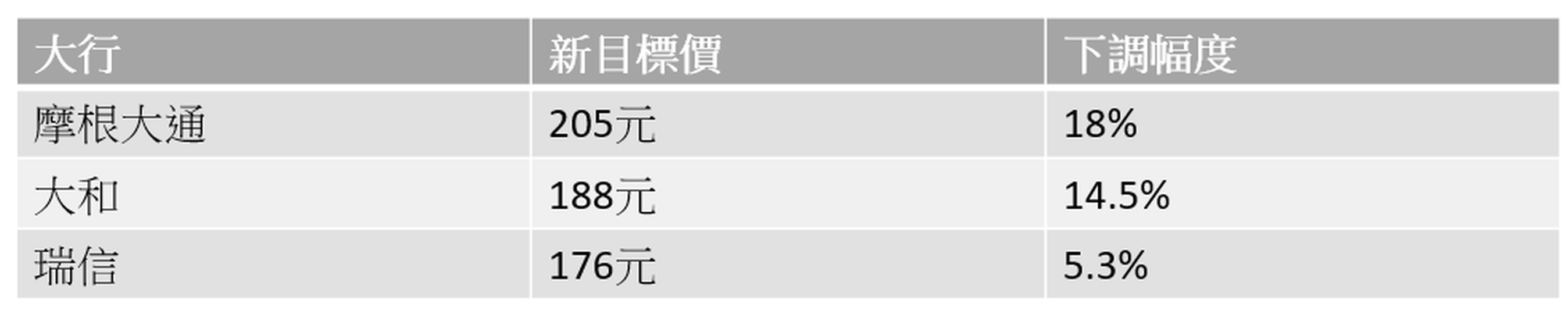 雖然管理層於電話會議作出講解,希望讓投資者更了解公司最新情況,但是從股價表現來看,投資者似乎並未收貨,同時多間大行降目標價。其中摩根大通更大劈目標價18%至205元,另一大行瑞信亦降目標價至176元。