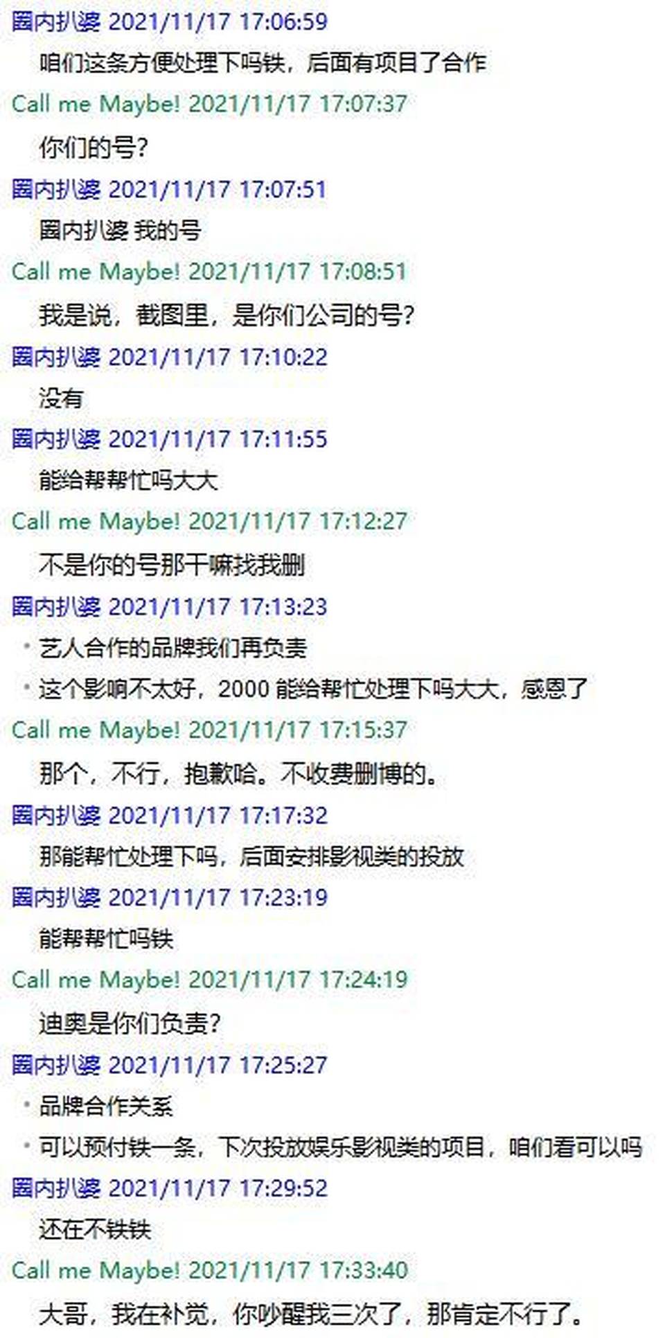 還有博主發文稱,有迪奧的品牌合作方來找其收費刪除陳漫作品相關微博,對方開價兩千讓幫忙刪博。