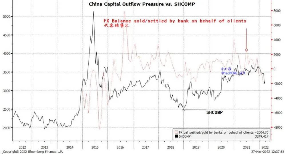 圖表2:代客結售匯餘額變化表明資本外流壓力