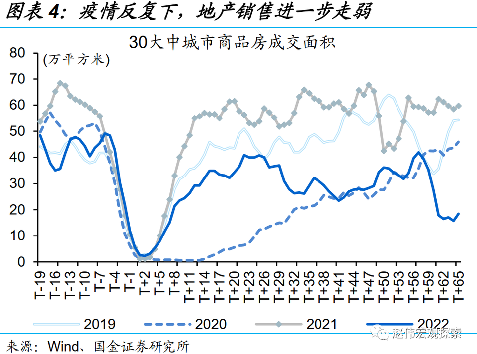 地產景氣的持續降温使得土地收入端承壓,進一步推升債務壓力。2021年下半年以來,地產銷售持續低迷、30大中城商品房成交一度按年下降超5成;地產景氣降温下,土地財政壓力進一步凸顯,作為政府性基金收入的重要來源、國有土地使用權出讓收入2月已進一步下探至-29.5%。疫情反覆等干擾下,地產銷售或往後延遲,進一步抑制房企拿地行為,加大土地財政壓力。