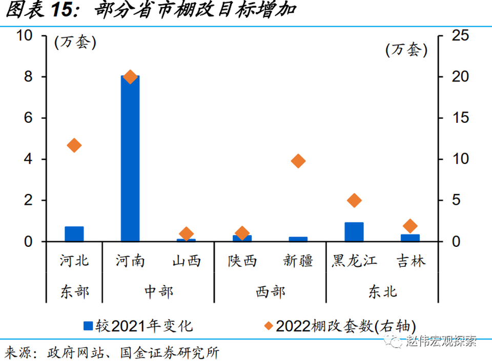 地產景氣降温下,部分省市先後放寬購房資格、增加補貼、增加棚改等「穩」銷售緩解壓力。「房住不炒」下,政策支持商品房市場更好滿足購房者合理住房需求、由地方自主進行調節。主要體現在,公積金貸款管理、降低首期比例、下調房貸利率等。除被動「刺激」需求的措施,部分省市加大棚改投入、其中河南、黑龍江、吉林分別為20萬套、5萬套和1.9萬套,按年分別增長67%、22%和20%,個別城市明確提出棚改貨幣化,主動「釋放」需求(詳情參見《棚改「2.0」時代》)。