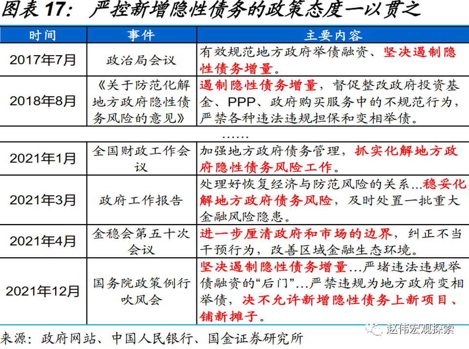 「土地財政」承壓下,地方債保持高增或有助於緩解壓力,但增量也不能持續擴張、尤其是隱性債務。2022年,新增專項債、一般債額度分別為3.65萬億元和7200億元,維持高位,一定程度上或緩解債務壓力。但債務增量持續擴張加大債務累積,尤其是部分隱性債務,2021年上半年新增平台帶息債務4.4萬億元、存量增速回落至12.3%。