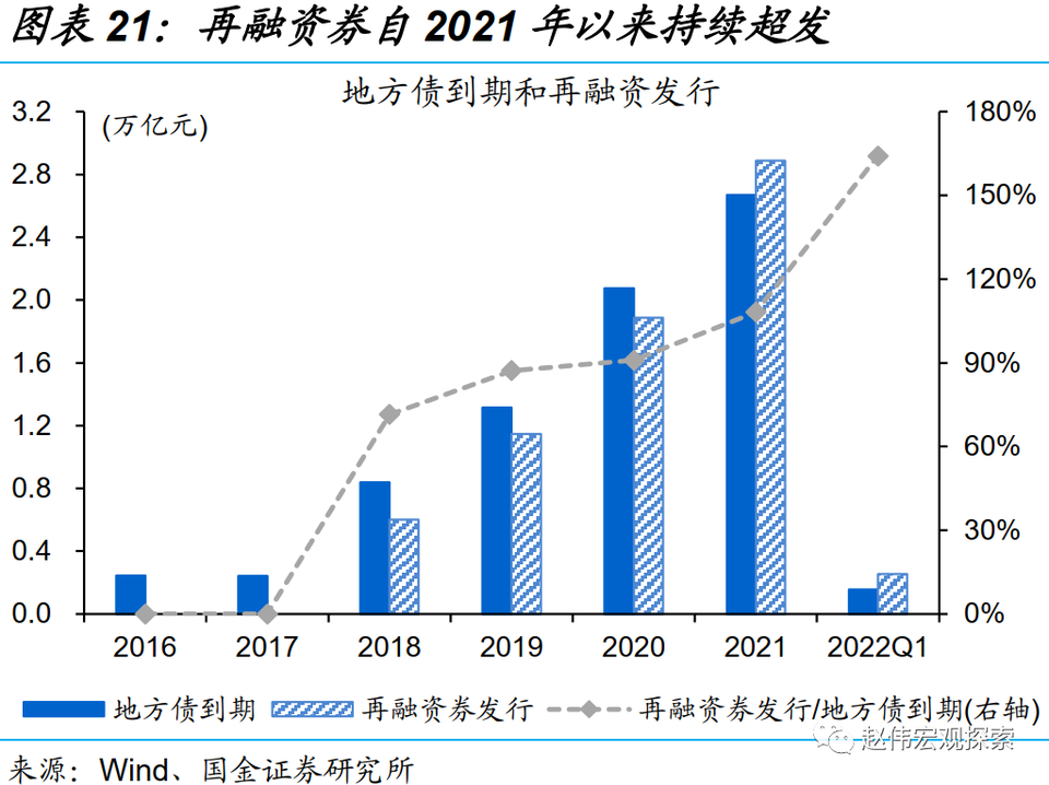 化解存量壓力也在路上,地方債分配優化、再融資券發行加快等均有助於優化債務結構、緩解債務壓力。伴隨地方債務積累,政策一直在完善新增債券的分配機制、專項債要向債務風險較低的地區傾斜等,以兼顧穩增長和防風險的需要;同時,再融資券「置換」現象也明顯增多,或與隱性債務化解加快推進、債務償付壓力加大等因素有關(詳情參見《從專項債變化,看基建發力的線索》、《債務「置換」加快,穩增長「輕裝前行」》)。