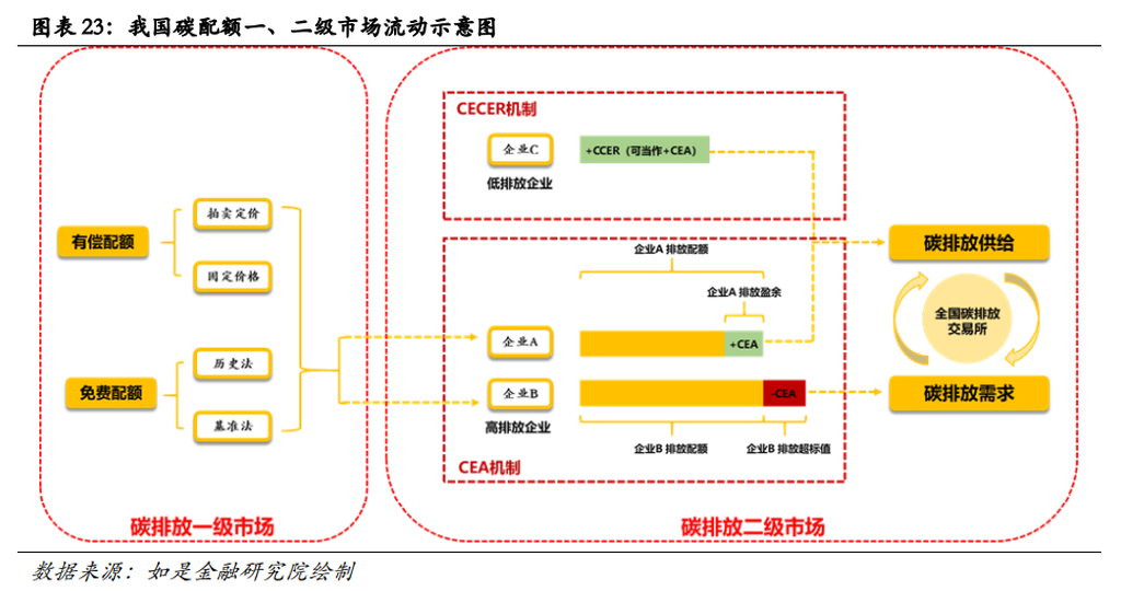 (1)交易體系:全國市場將以配額市場(CEA)為主導