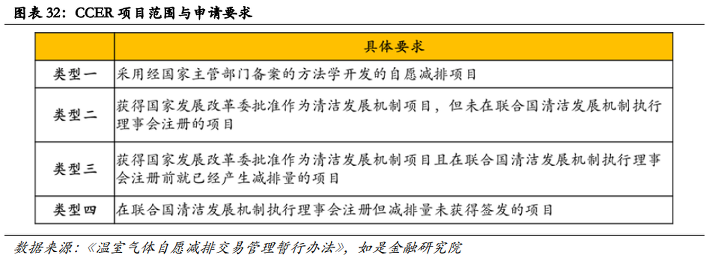 自願減排碳信用交易市場(即CCER市場)指部分對低碳、環保有正向貢獻的企業可以將其正在經營的節能減排環保項目申請報備,一旦報備通過,相關部門通過考察該公司對於減排實際效果的貢獻,給予其對應的核證自願減排量(CCERs)。