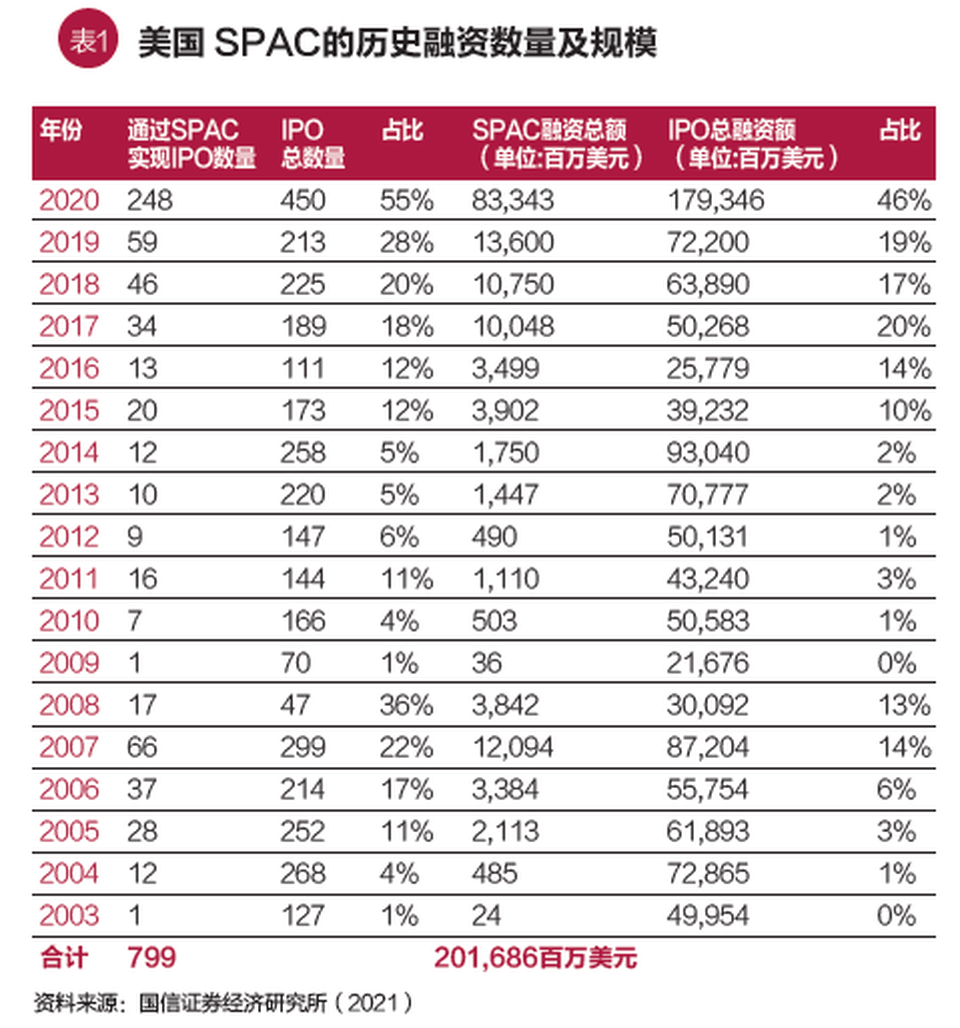 近年來,特殊目的併購公司(Special Purpose Acquisition Company,簡稱SPAC)在美國資本市場迅猛發展,成為企業上市主要途徑之一。這些變化引起了監管部門、學術界以及資本市場的強烈關注。有評論認為它是制度的深刻創新,重塑資本市場形態,也有批評觀點指出它特殊的激勵結構及監管套利等可能引發資本市場泡沫,甚至除美國外的世界其他重要證券交易所也不得不重新審視自身政策以適應由SPAC引發的新一輪交易所競爭。