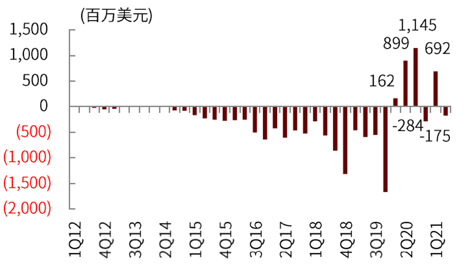 圖表:Netflix 1Q12~2Q21Non-GAAP自由現金流