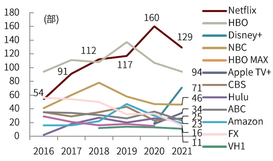 從長期競爭格局看,內容重要性突出,流媒體平台與傳統媒體迎來正面競爭。對網路渠道方而言,我們認為隨着內容對渠道的影響力有所加強,平台需要以豐富的優質、獨家內容滿足各類用户需求,而打通產業鏈上下游有助於有效控制內容品質、形成自有內容調性,獲得差異化壁壘。對傳統內容方而言,我們認為渠道作為離終端消費者更近的環節更有利於內容營銷推廣,並通過縮短窗口期實現多元化變現。因此,以Netflix、Apple等網路平台加強內容自制,迪士尼等好萊塢傳統制片廠們推出自有平台為標誌,影視行業呈現出內容渠道縱向整合的趨勢,產業鏈上下游競爭愈發激烈。