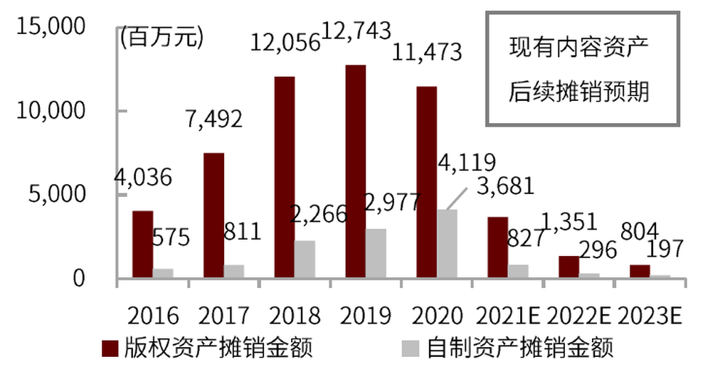 圖表:愛奇藝現有內容資產攤銷的金額有望自2021年起減少