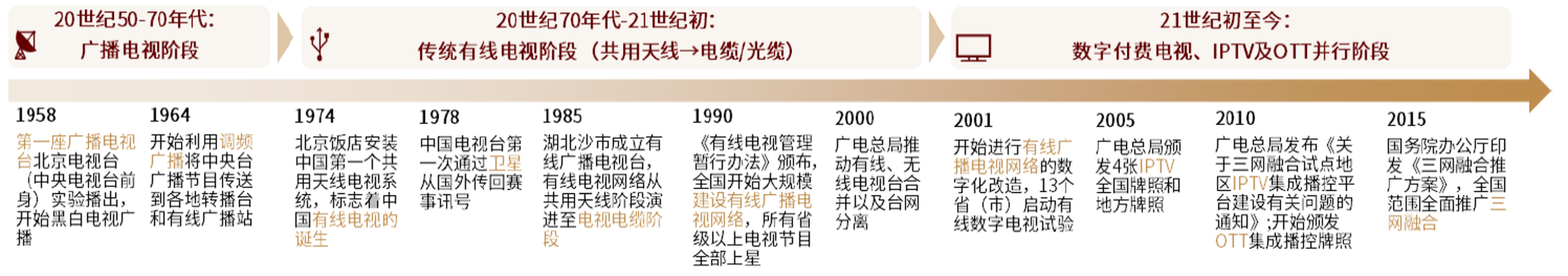 從歷史背景看,中國收視渠道經由免費階段發展而來,付費率提升難度高於美國。與美國付費電視和免費電視幾乎同時出現、用户從付費電視向流媒體訂閲實現平滑過渡不同,中國國內的視頻內容付費環境存在較大差異。從電視行業看,有線電視發展的最初30年間,行業主要通過廣告收入實現運轉,電視觀眾僅被收取數額有限的有線電視維護費,並不需要直接為內容和服務買單;從視頻行業看,在21世紀興起的本土視頻網站在發展初期版權意識較弱,為爭取用户規模大多免費向用户提供版權內容,消費者因而形成了免費觀看的習慣性心理,對內容付費的接受度相對有限。