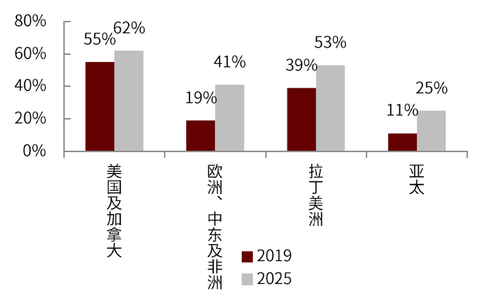 圖表:Netflix對不同地區用户滲透率及未來預測
