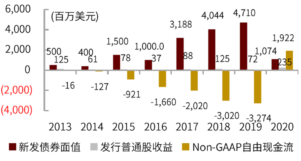 圖表:Netflix通過債券及股權融資填補現金流缺口