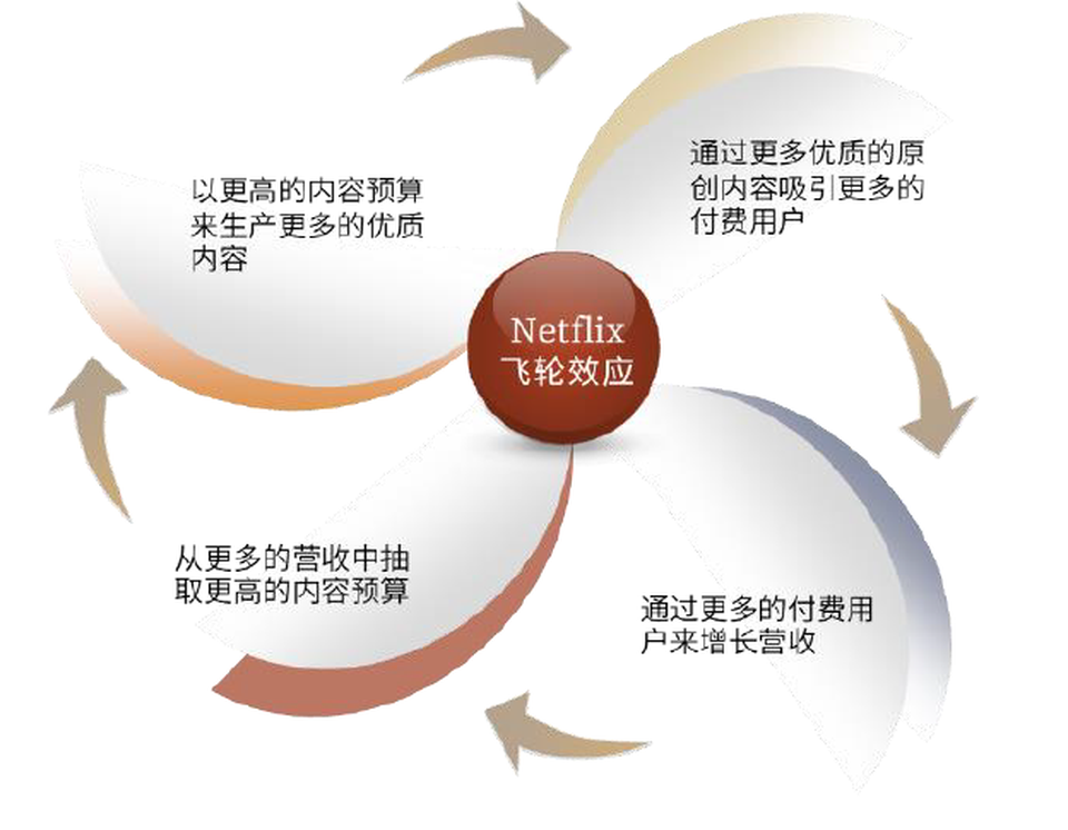 優質內容和訂閲量形成良性循環,飛輪效應奠定競爭壁壘。我們認為,Netflix作為最早投入流媒體賽道的行業參與者較早獲得龐大的用户群體,通過用户付費獲得可觀受益;伴隨營收增長,公司在內容生產、內容分發、品類拓展方面加大資源投入,從而為用户提供精品化、定製化、多元化的優質內容。而優質內容和用户訂閲之間形成相互促進的良性循環——更多的優質內容促進了全球付費用户的增長,從而增加公司總營收,使公司有更多的內容預算,更多內容投資反過來又繼續促進優質內容的增長,最終兑現更多營收(會員規模或ARPU)。這樣的飛輪效應使公司處於業績攀升的良性循環中,一方面對傳統有線電視競爭對手形成「降維打擊」,一方面對同行業參與者始終保持先入優勢。