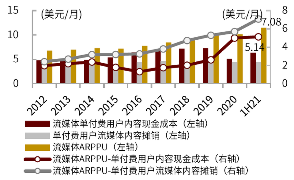 圖表:Netflix流媒體ARPPU與內容成本差額提升