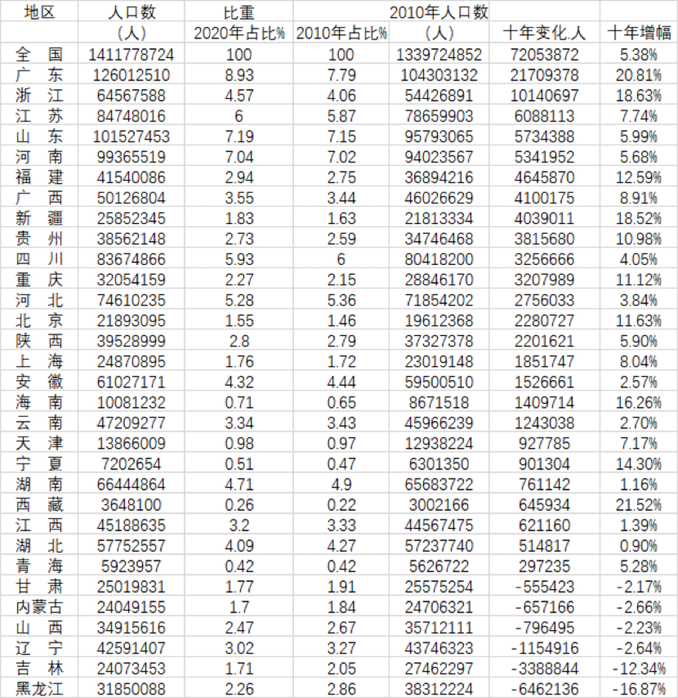 正是在廣深這兩大一線城市的帶動下,近年來珠三角轉型升級走在前列,對人才、人口也產生了強大的磁場效應。七普人口數據顯示,十年來,廣東人口增加了2170.9萬人,佔全國增量的30%。廣東增長人數幾乎與浙江、江蘇、山東三省合計增加人數相當。