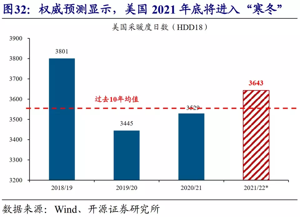 短期來看,隨着冬季到來、整體用電季節性回升,疊加傳統能源品供應難明顯擴張,全球能源危機或將進一步發酵。經驗顯示,冬季供暖季到來後,整體用電需求、尤其是火電發電需求(水電發電在冬季一般驟降),往往迎來明顯的季節性回升。並且,美國大氣與海洋管理局(NOAA)、能源訊息署(EIA)的最新預測顯示,2021年冬季大概率出現極寒天氣。考慮到傳統能源品供應短期難以放量,寒冬季節的到來,可能使得全球能源危機進一步加劇。