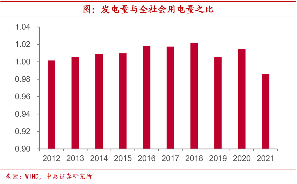 發電用電基本對應,沒有提出過高要求。從發電量和用電量之間的關係上來看,2016年以來兩者之間的比值穩定在1.0左右,而今年前七個月,發電量與全社會用電量之比略低於1.0的水平,這意味着在用電量相同的情況下,所需的發電量略有減少。由此可見,用電增長也並未對發電系統提出超出以往水平的過高要求。