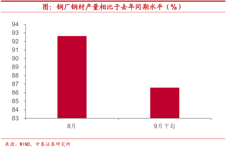 行業影響差異懸殊。事實上,在能耗雙控和煤炭短缺等多重因素導致的限電限產情況下,不同行業受到的影響存在着顯著差異。以鋼鐵行業為例,今年8月鋼廠鋼材產量大約相當於去年同期的92.6%,但是限產限電趨嚴的9月下旬,鋼廠鋼材產量下滑到去年同期的86.6%,這意味着限產限電對於鋼鐵行業的影響約在6個百分點。我們同樣整理瞭如化工等部分高耗能行業的開工率情況,結果同鋼鐵行業大體類似。但是,對於耗能佔比較低的行業而言,生產限制可能並不顯著,比如屠宰廠開工率相較往年同期水平變化不大。