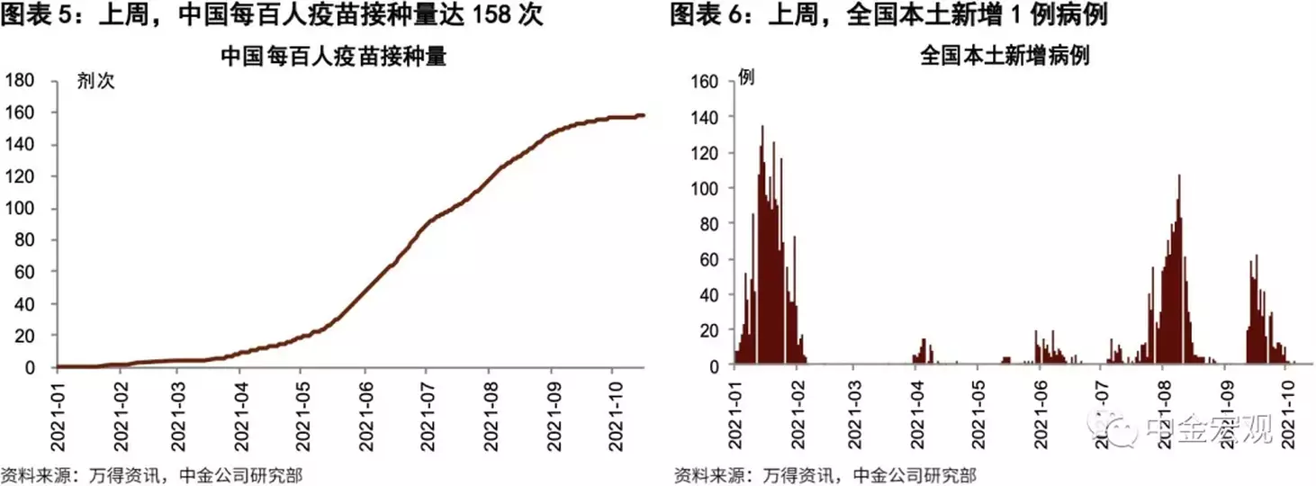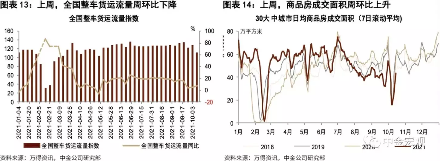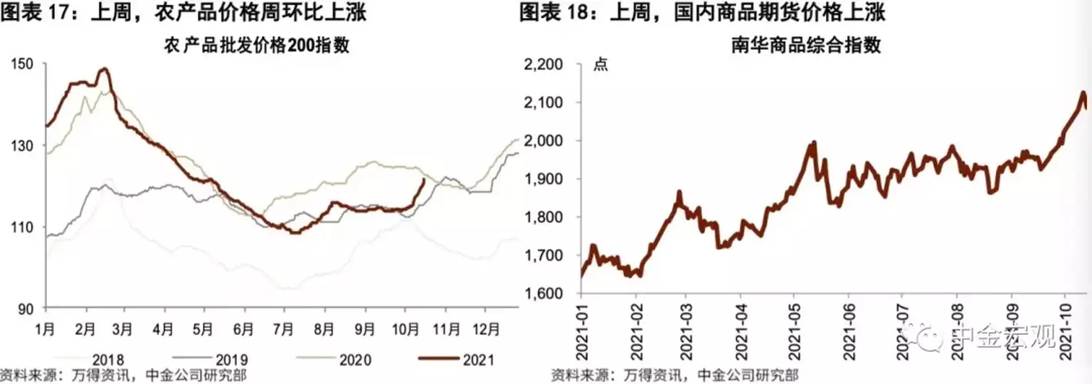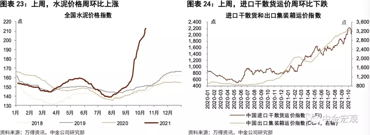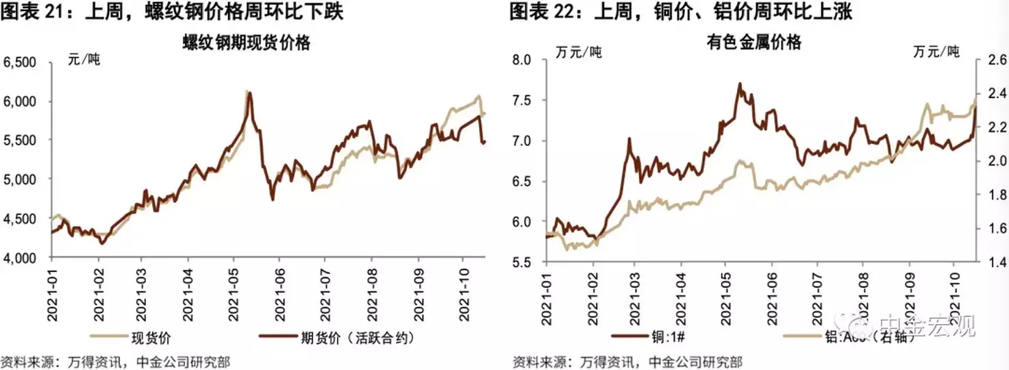 鋼材價格回落,國際油價持續上行。伴隨生產的邊際改善,上周鋼材價格回落,上海地區螺紋鋼現貨價格周按月下跌3.8%至5840元/噸。限產繼續支撐水泥價格,上周全國水泥價格指數周按月上漲4.5%,連續創出2011年該數據記錄以來的高點。國際原油價格從8月的低點已趨勢上行2個月,在全球能源階段性短缺的背景下,原油和天然氣、煤炭等價格共振上行。