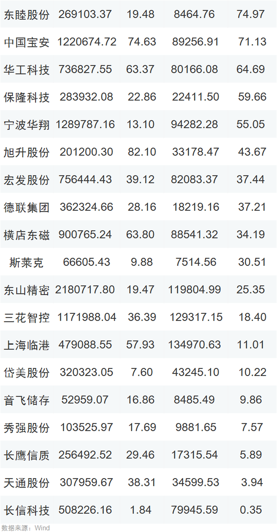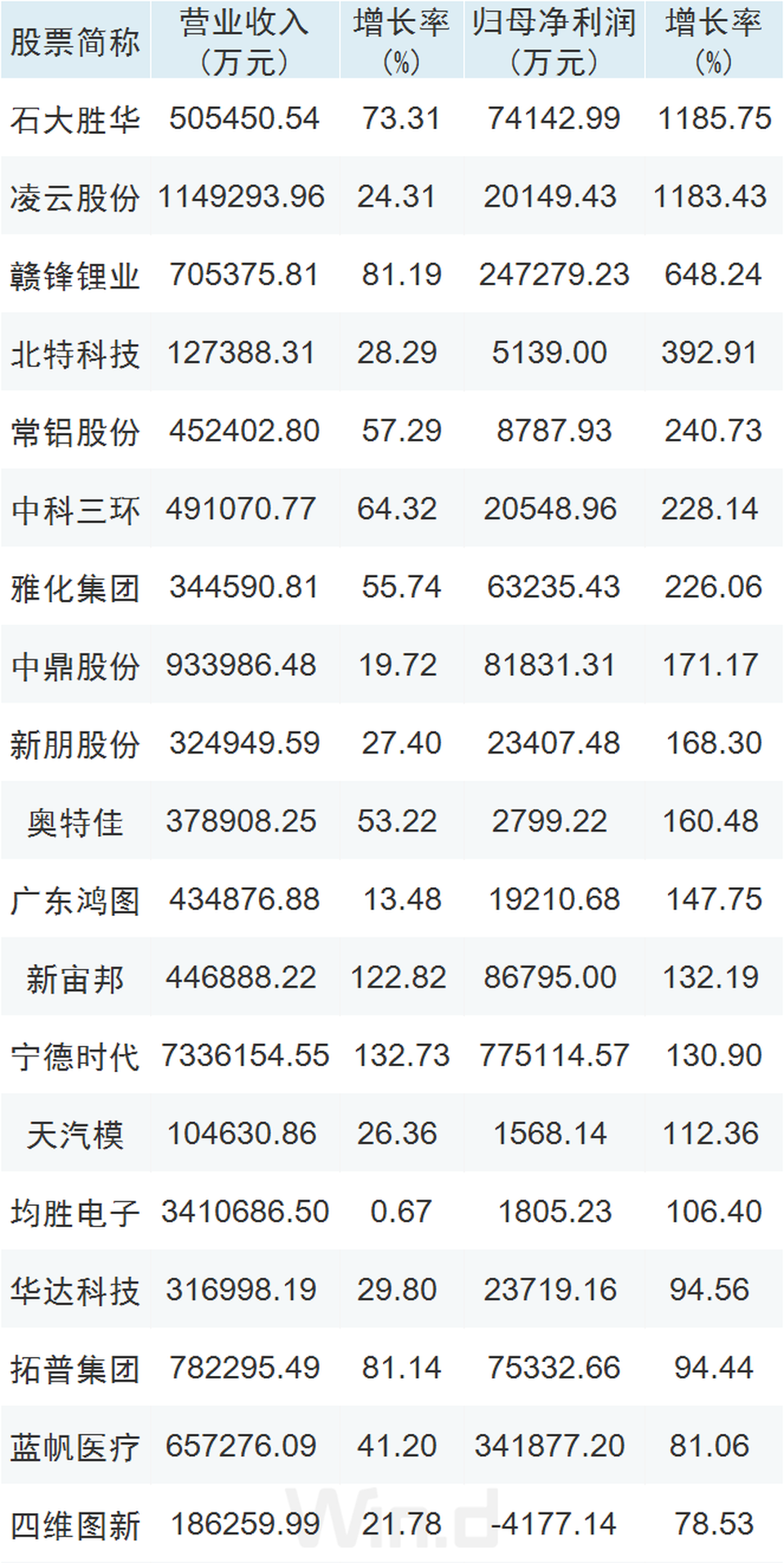2021年三季報業績增長排名靠前公司如下: