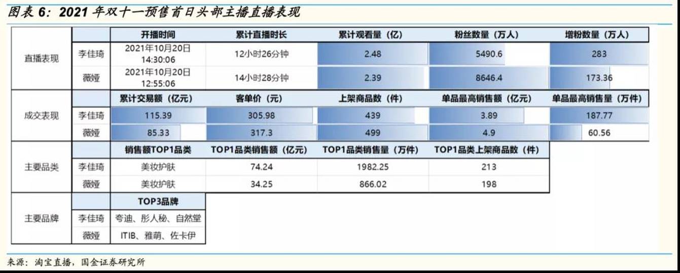 薇婭則是直播電商大潮中的超頭部主播,今年雙十一首日,薇婭直播間預售銷售額就達到了85.33億元。