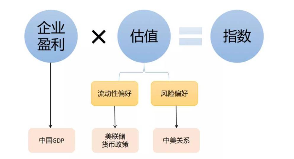 2. 美元流動性(2016~2017年的温和水牛市)和風險偏好(2018年上半年的下跌)共同決定估值水平。
