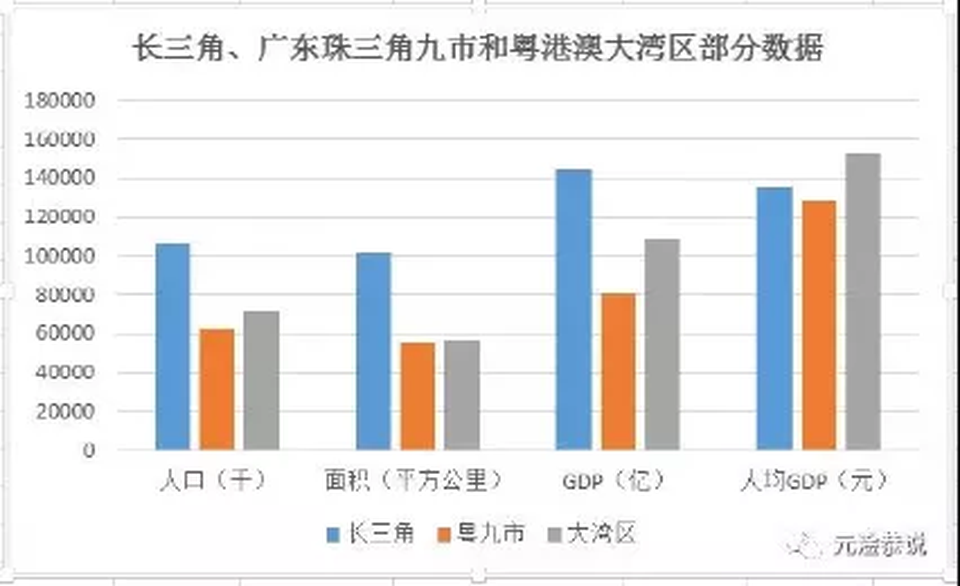 上海+蘇州面積為1.48萬平方公里,廣州+東莞+深圳只有1.19萬平方公里。因此無論是人均GDP、經濟密度還是人口密度,都是大灣區代表隊完勝。