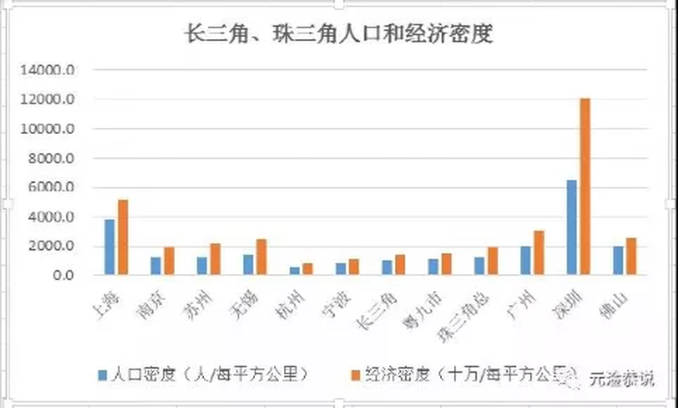 經濟密度的差距,讓大灣區更像一個「市」,長三角則更像一個「省」。