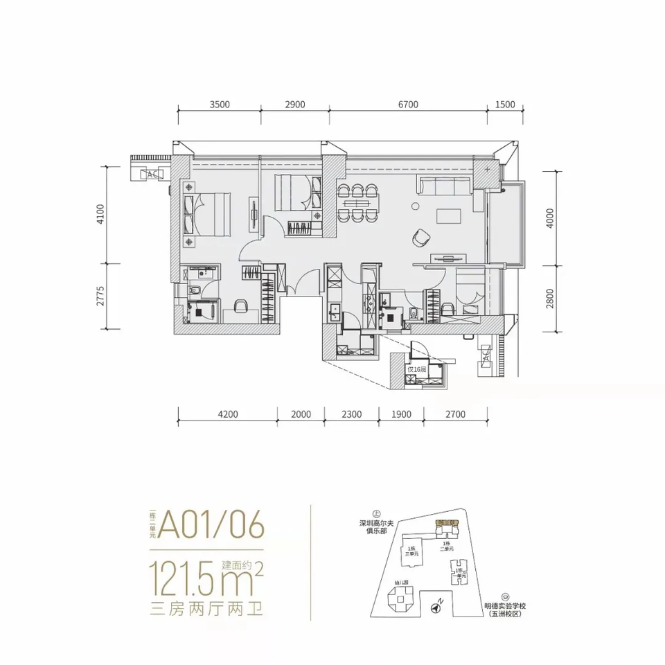 要麼取景小區花園,陽台、客廳則主要朝南,如1棟二單元的03,04户型;要麼取景高爾夫球場景觀,户型則朝北,如1棟二單元的01,06户型,1棟三單元的360平方米的豪宅户型。