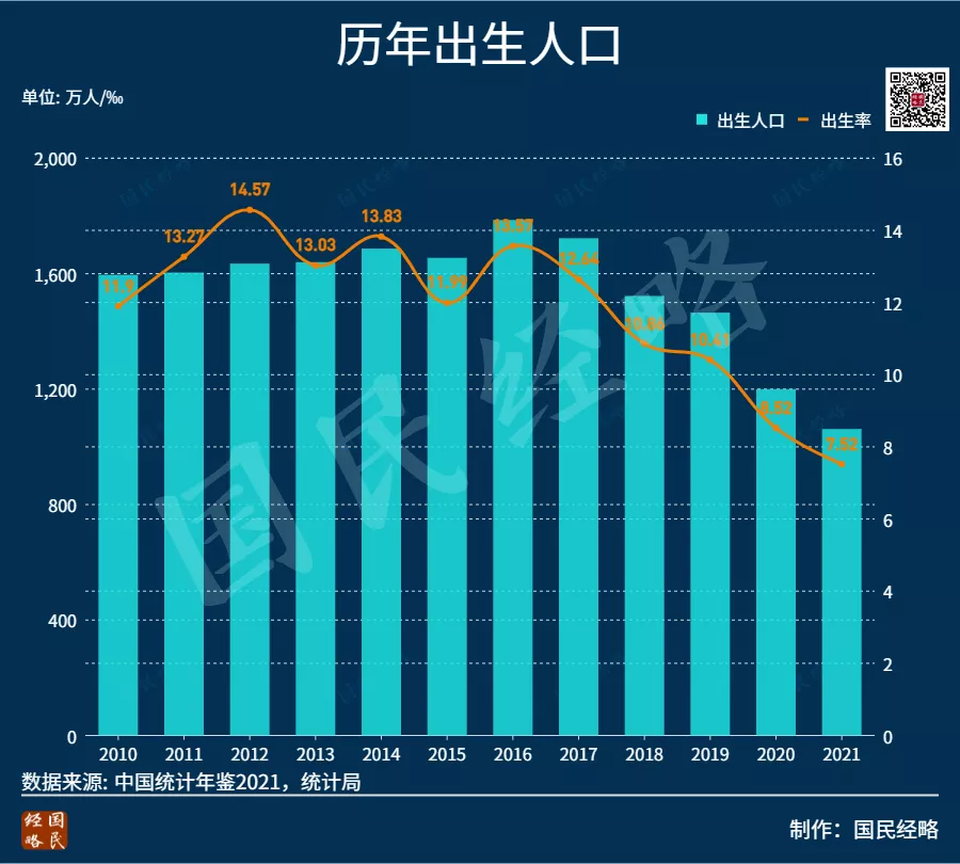 與2020年相比,全國出生人口從1200萬降到1062萬,減少了140萬左右。與放開二孩之後2016年的1786萬人相比,減少了700多萬人。