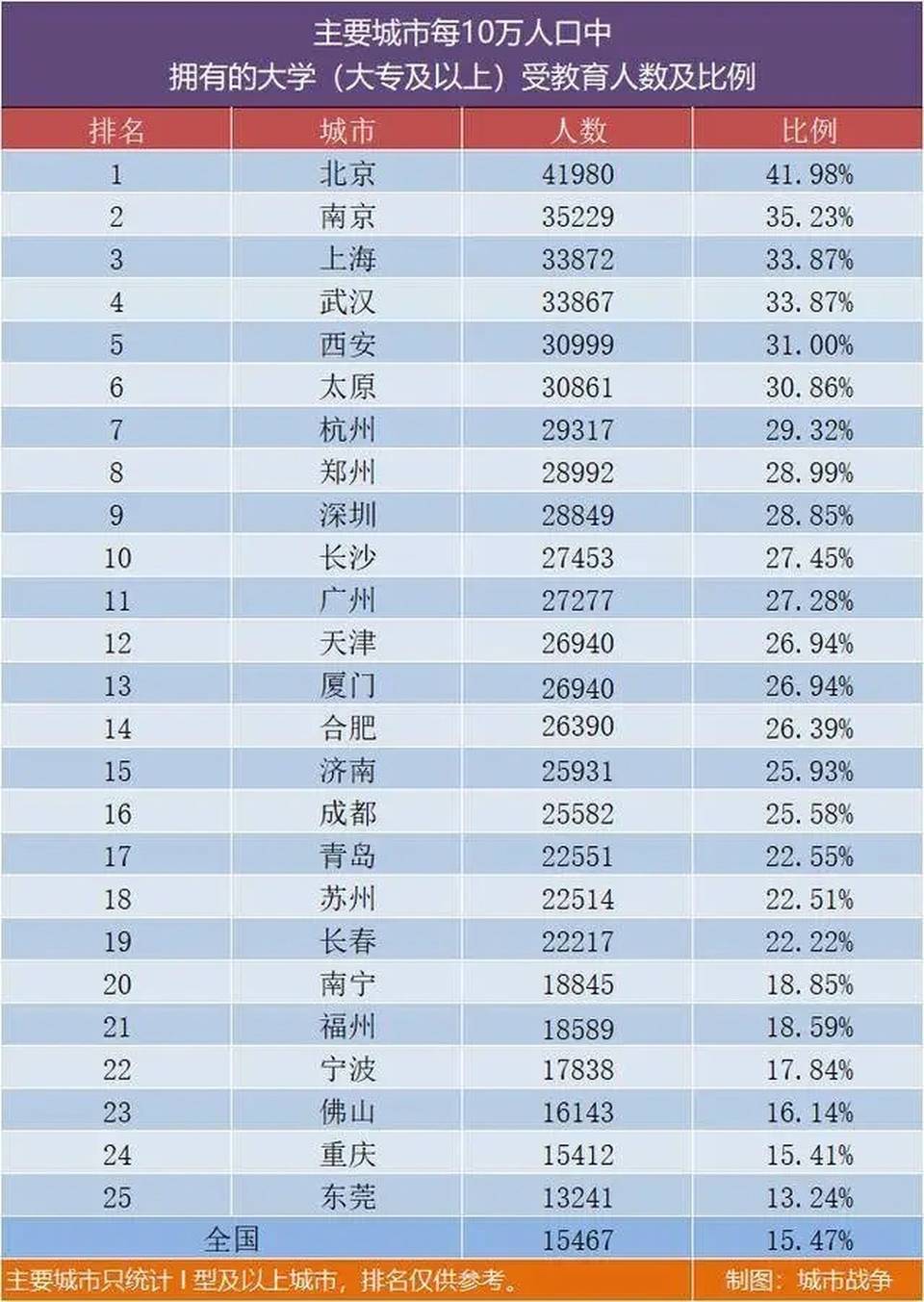 但是如今對於人才的爭奪可不像當年那樣「一呼百應」。「七普」數據顯示,東莞每十萬人中擁有大學受教育人數的比例為13.24%,不及全國平均水平,在全國各主要城市中墊底。