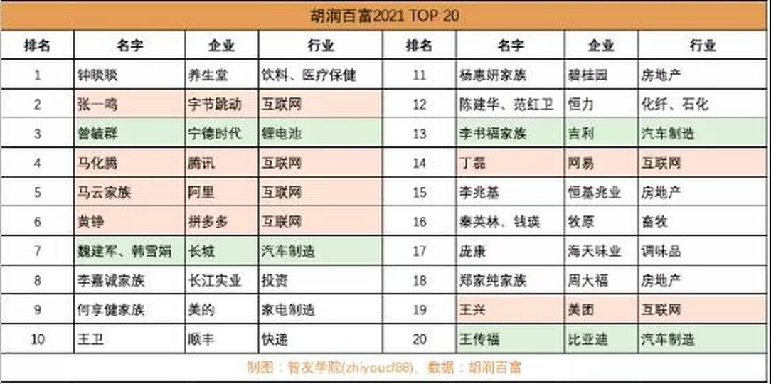 受到監管政策影響的,基本排名都下降了,有幸逃過一劫的,則排名有所上升,這裏有拼多多的黃錚,和字節跳動的張一鳴。