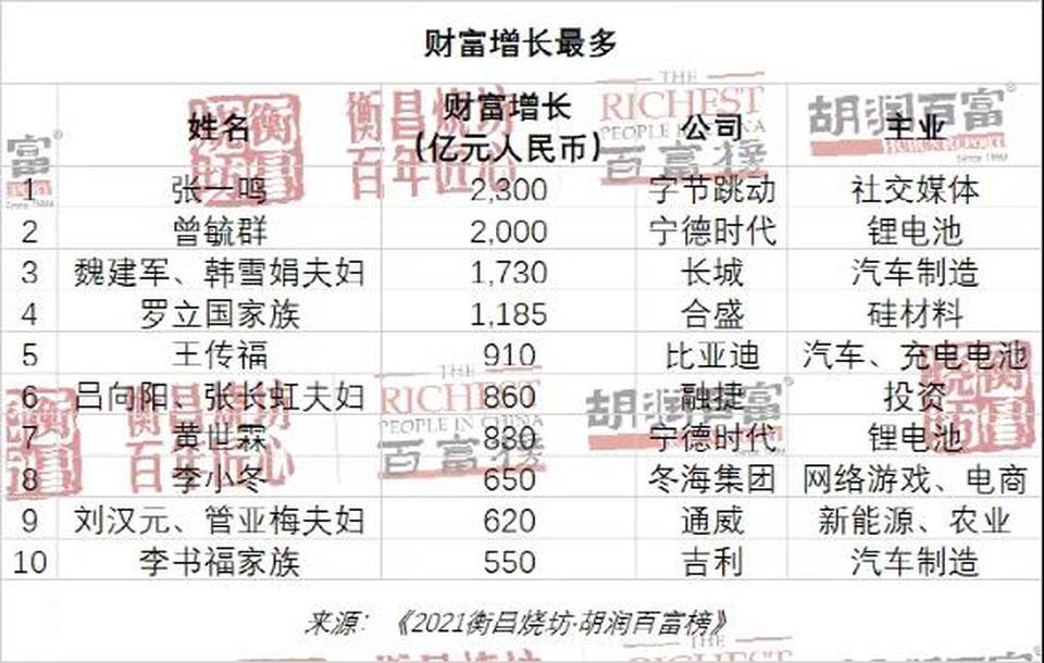財富增長最多的前10位企業家中,8位和新能源有關。其中,6位主業是電動汽車,2位主業是光伏。