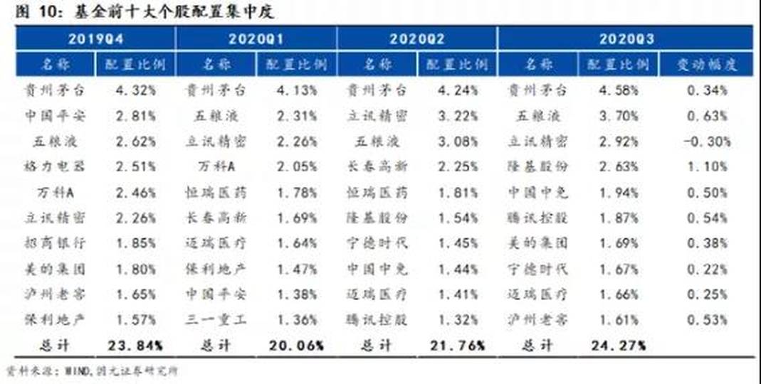 公募基金的每個季度的前十大持倉股,能基本反映這個市場的態度。