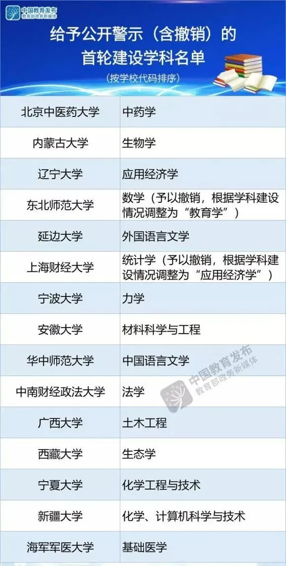 時隔5年,第二批「雙一流」建設高校及建設學科名單公布,同時官方還公布了給予公開警示(含撤銷)的首輪建設學科名單。