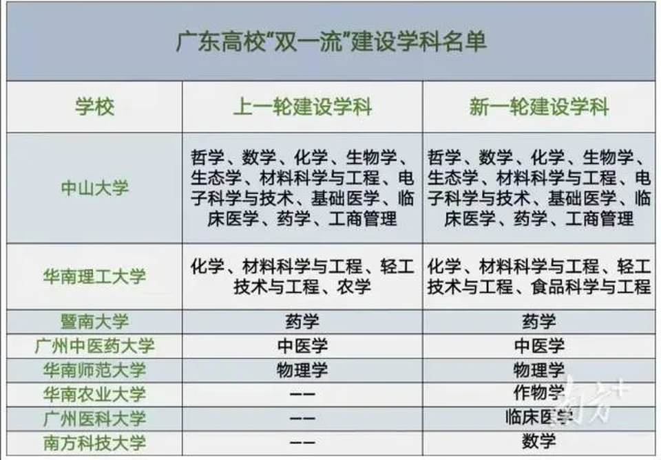 經過這輪調整,廣東「雙一流大學」數量獲得明顯提升,從原來的5所增加到8所。