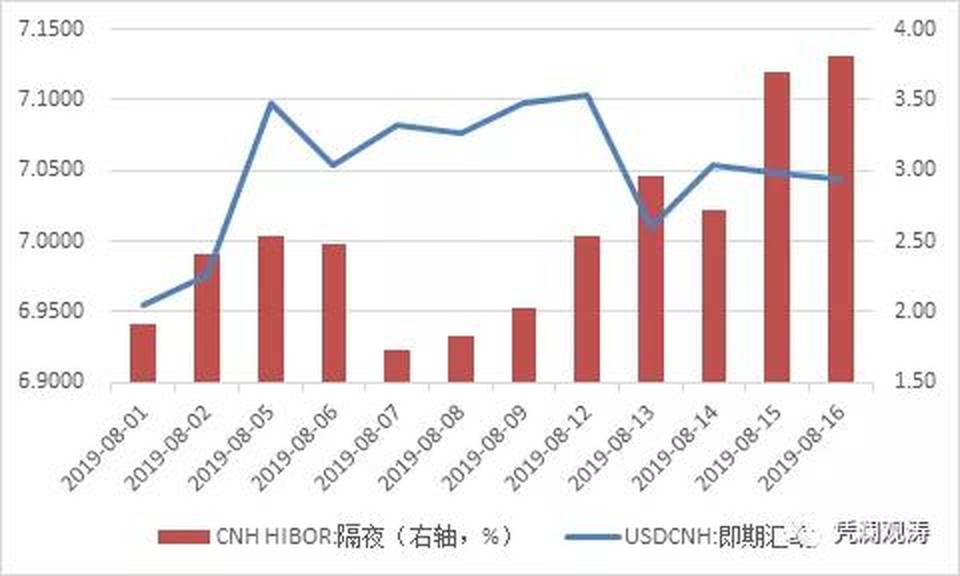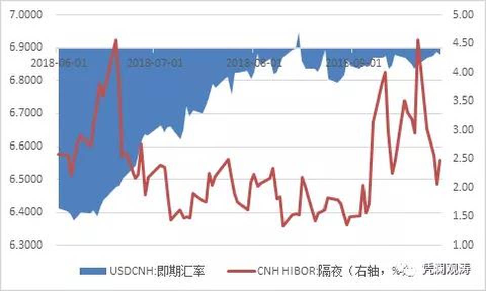 此前,受中美貿易紛爭升級影響,6月中旬以來境內外人民幣匯率快速下跌。8月初,央行恢復對遠期購匯徵收20%的外匯風險準備;8月底,重啟人民幣匯率中間價定價機制中的逆周期調節因子。9月17日,美國宣佈對2000億美元中國進口商品加徵關稅的措施將分步實施,先自9月24日起加徵10%的關稅。所以,央行擬在香港發行央票的消息一宣佈,市場就生出了央行預借此回籠離岸人民幣流動性、推高離岸人民幣利率,進而調控CNH走勢的聯想。