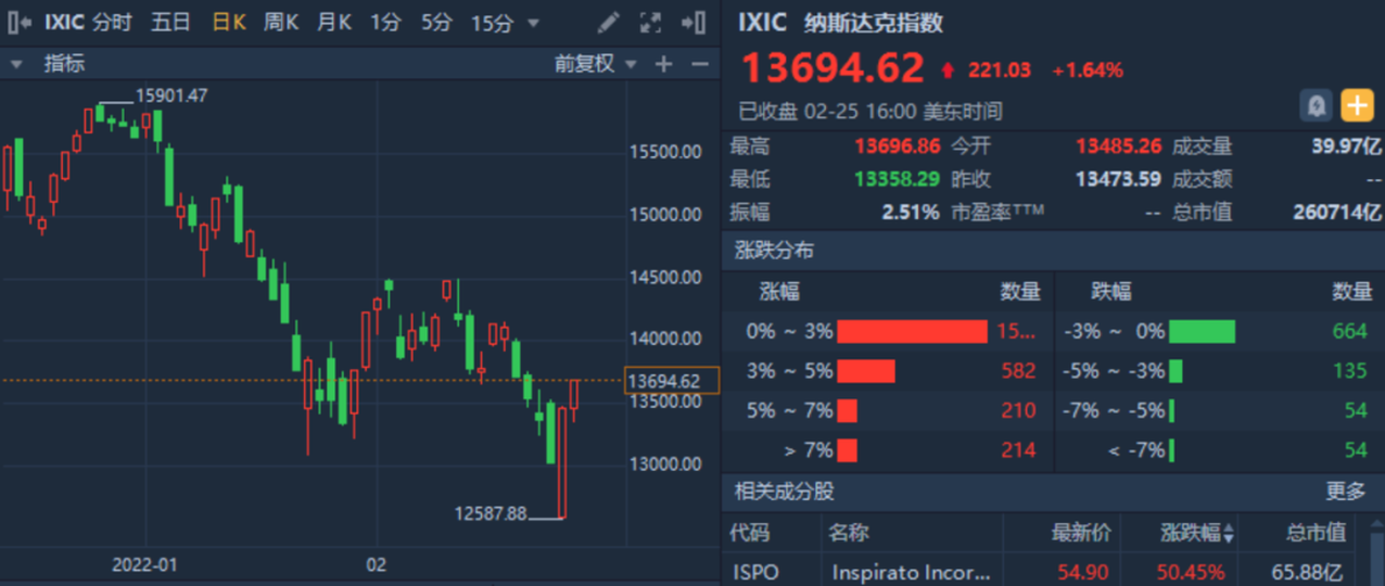周四納斯達克指數收漲超3%,周五再收漲1.64%。
