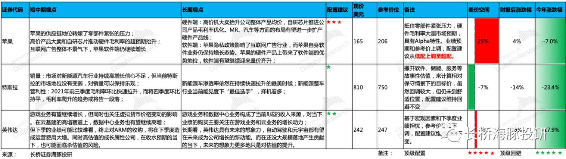 當前宏觀Beta對成長和科技的估值壓力已成共識,在這種情況下優選個股尤其重要。海豚君也基於當前的宏觀情況,與個股四季度業績所傳遞的增量訊息,更新了對這幾家公司的判斷,整體如下: