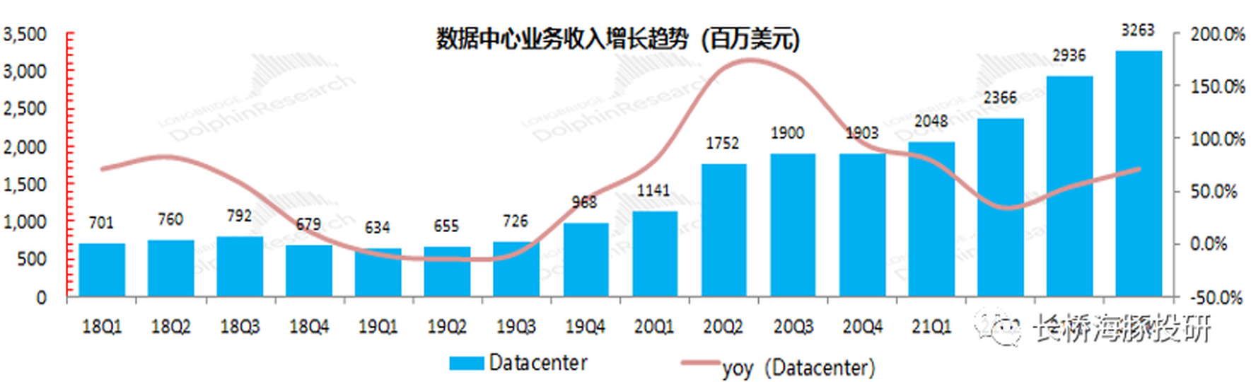 【2】數據中心業務:本季英偉達數據中心業務再創歷史新高,已經連續9個季度實現高增長。此前公司數據中心業務增長主要由於收購Mellanox的收購,業務並表直接帶來了高增長。而本次並表的直接影響在2021年第二季度已經結束,隨後數據中心業務仍能保持高增長主要來自於下游雲業務的強勁需求和公司內生增長的實力。