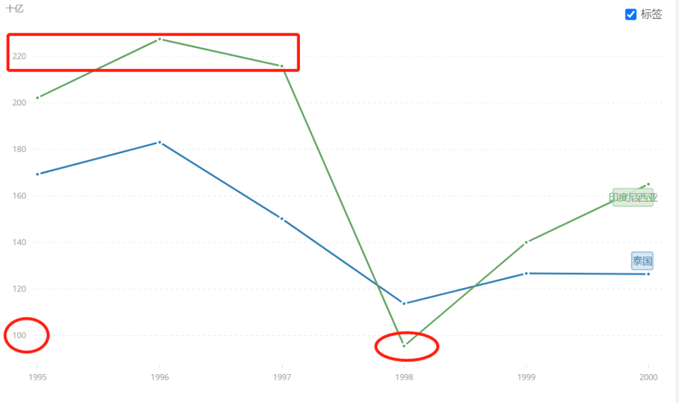 其中,印尼和泰國的GDP在兩年內分別縮水了83.4%、40%。