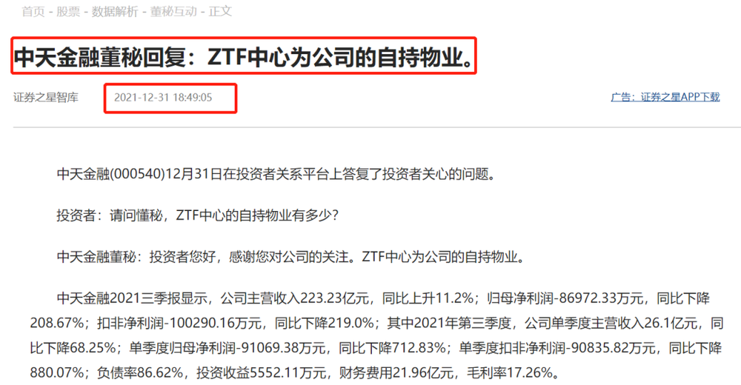 更重要的是,中天金融董秘曾在去年底回覆投資者提問時談到,ZTF(貴陽國際金融中心的項目案名)為公司的自持物業。