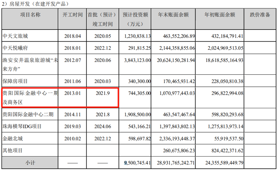 此外,貴陽國際金融中心一期及商務區的開工時間為2013年。