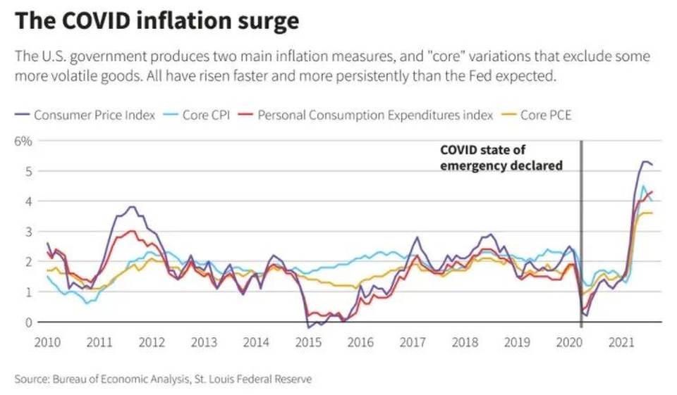 目前,美國失業率已降至3.8%,為歷史最低水平,美國家庭也因與疫情相關的政府援助項目而手頭寬裕。而美國通貨膨脹率是美聯儲2%目標的三倍,已經成為美國經濟主要威脅;這不僅考驗美聯儲的決策能力,而且使人們擔心會出現上世紀70年代那種困境,即美聯儲不得不實施一場懲罰性的經濟衰退來控制價格。