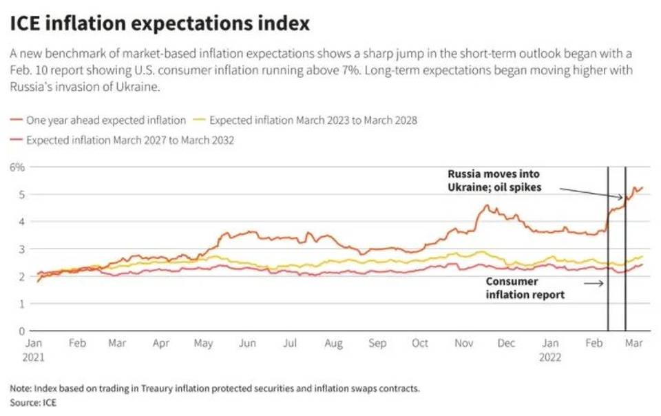 鮑威爾在3月2日表示:「烏克蘭危機改變了遊戲規則,並將伴隨我們很長時間。還有一些事件要發生……我們不知道對美國經濟的真正影響將是什麼。我們不知道這些影響是否會相當持久。」