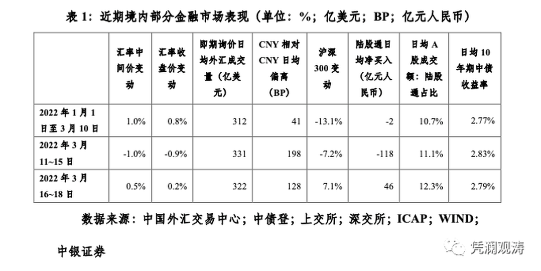 2月24日俄烏衝突全面爆發後,全球避險情緒上升,國際資本紛紛逃向美元、美債和黃金等安全資產。這一黑天鵝事件發生後,中國也遭遇了境外減持人民幣債券和股票,但人民幣匯率依然保持堅挺。