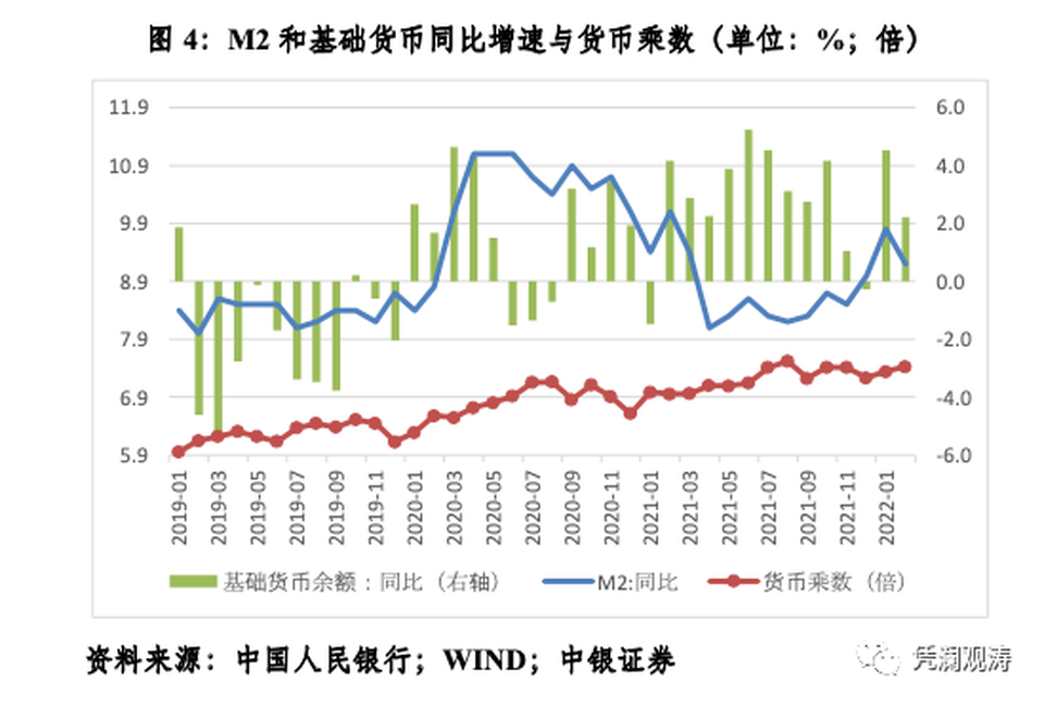 由於新冠疫情暴發以來,中國疫情防控基本有效,經濟率先復工復產,財政貨幣政策均保持了克制。中國成為少數貨幣政策處於正常狀態的主要經濟體,同時保持了國內物價基本穩定。故去年下半年以來,當包括美聯儲在內的大多數主要央行被迫改口「通脹暫時論」,加快貨幣緊縮步伐之際,中國央行根據穩增長的要求,跨周期與逆周期調節有機結合,綜合運用價格和數量手段、總量和結構工具,加大穩健貨幣政策的實施力度,保持市場流動性合理充裕,為實體經濟提供更有力的支持。到今年3月底,中國央行在繼續使用各種結構性貨幣政策工具的同時,已有兩次全面降準、一次全面降息。